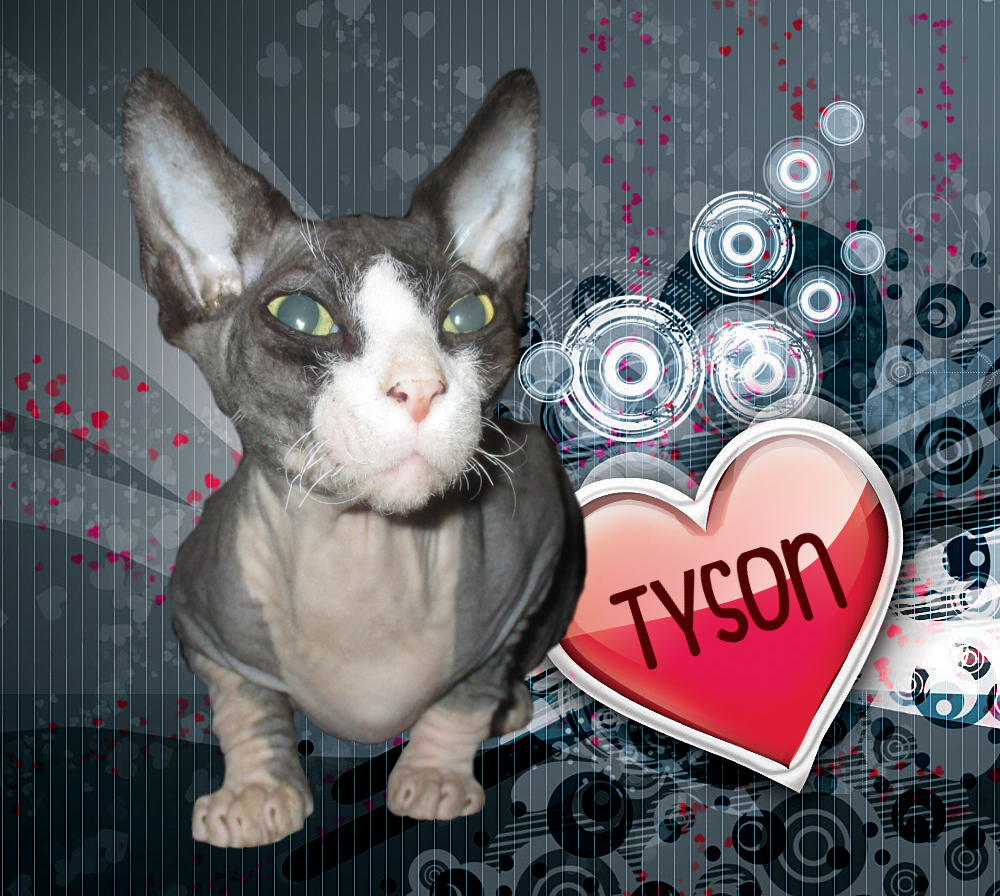 Tyson jediný kocúr v domácnosti máme ho od vtedy od kedy sa narodil (na valentína). Je to kanadský sphynx. Keď bol tyson malý tak rád obýmal šmolinku. Na poslednej fotke vidieť dve čierne mačky, tie ale už nemáme išli preč... Tyson je vykastrovaný takže mačiatka nie sú.